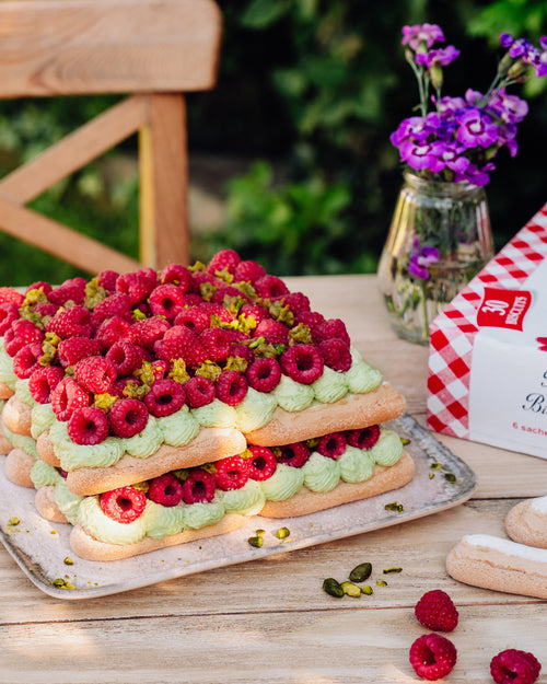 Entremets Pistache Framboise aux Biscuits à la cuillère Bonne Maman