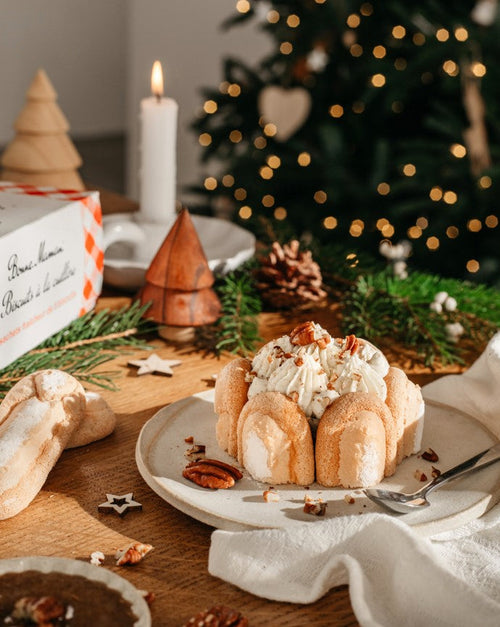 Entremets poire, praliné aux noix de pécan et Biscuits à la cuillère Bonne Maman