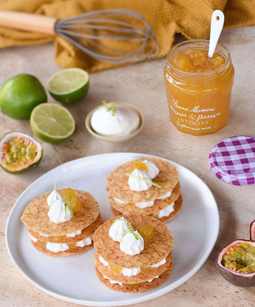 Mille-feuille de crêpes à la Confiture Ananas et Passion Intenses Bonne Maman et à la crème coco