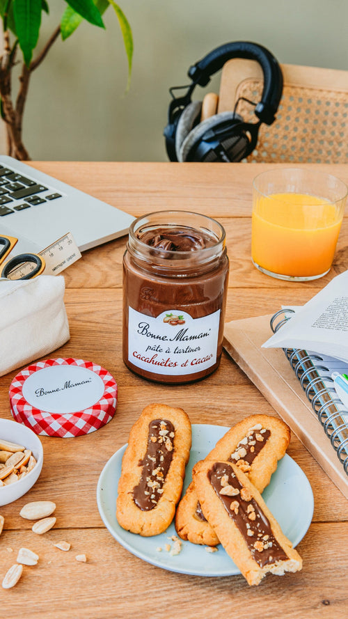 - Ajoutez par-dessus une belle cuillère de pâte à tartiner Bonne Maman.